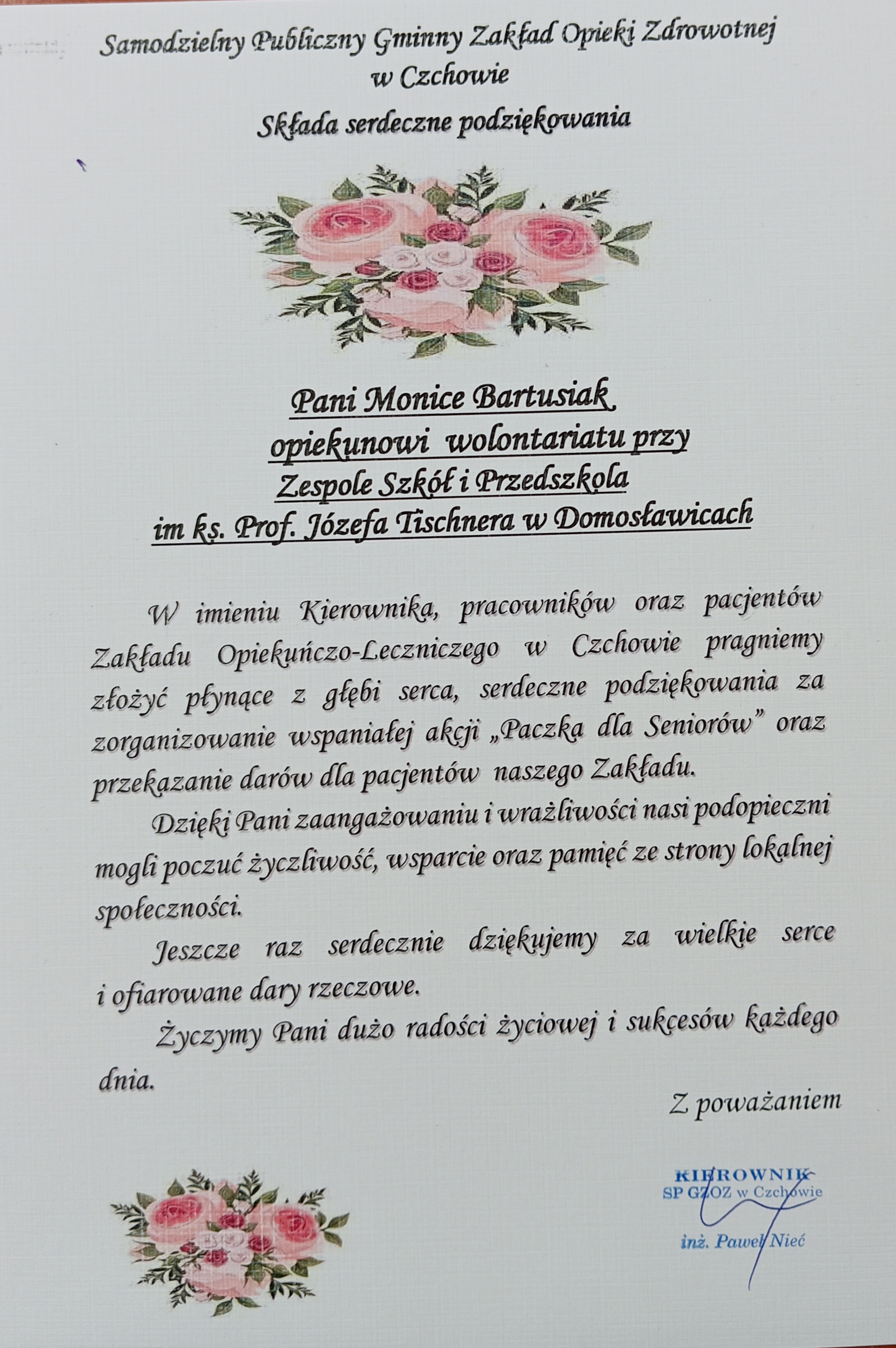 Z wyrazami wdzięczności