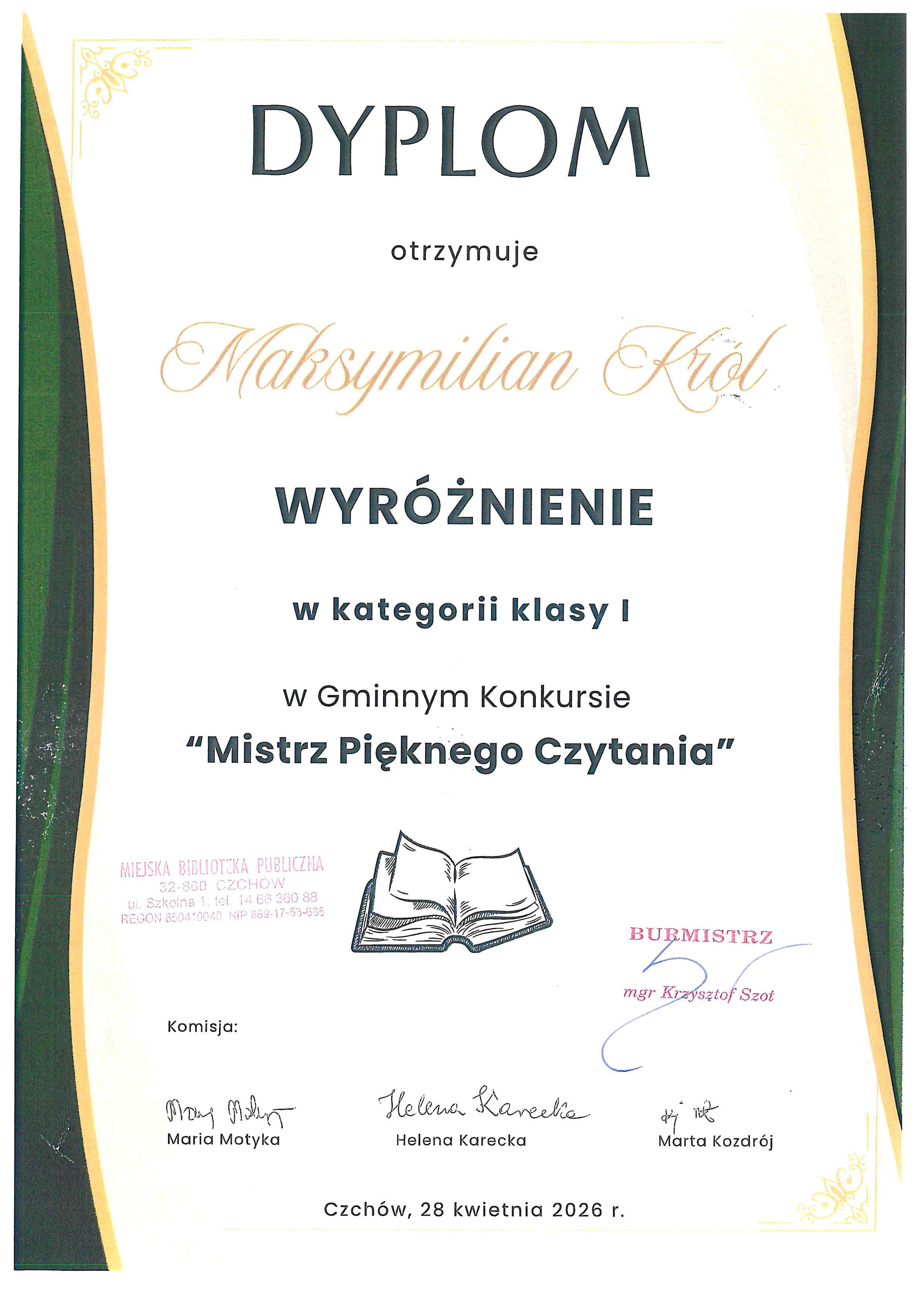 Maksymilian Król z klasy 1;