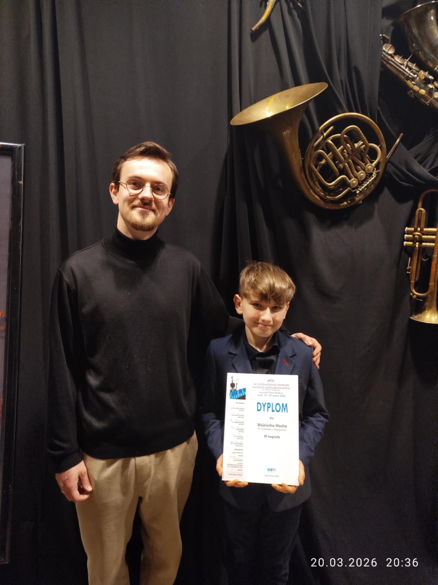 Serdecznie Gratulujemy Wojciechowi Wachowi - uczniowi Pana Mateusza Żydka - zajęcia III miejsca w XX Ogólnopolskim Konkursie Młodych Instrumentalistów w Jaśle. Wielkie brawa zarówno dla Wojciecha jak i dla Pana Mateusza