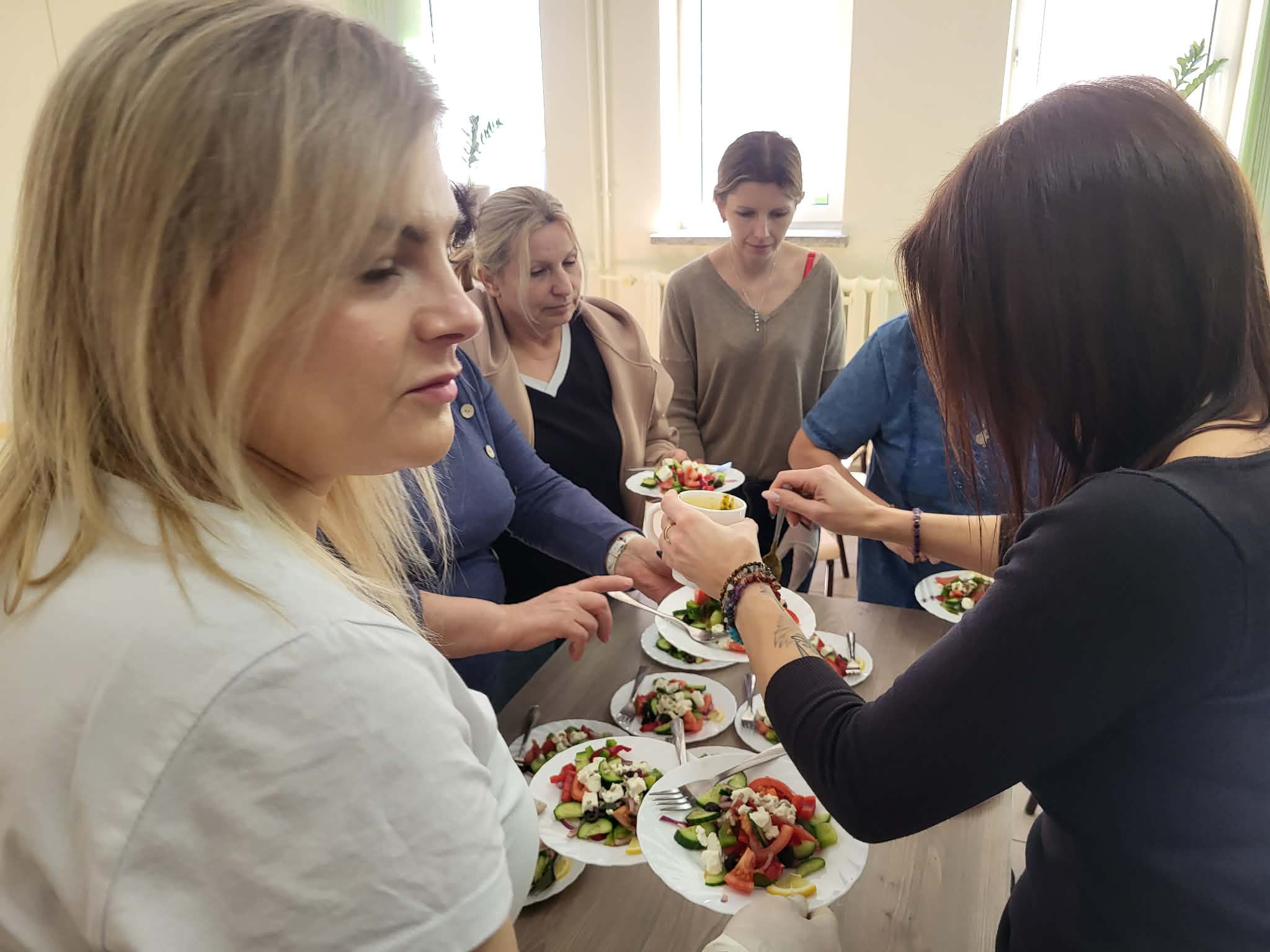 Kolejnym elementem były warsztaty praktyczne, podczas których uczestnicy samodzielnie przygotowują zdrowe, proste i smaczne potrawy, ucząc się świadomych wyborów żywieniowych. Zajęcia cieszą się dużym zainteresowaniem i stanowią doskonałą okazję do zdobycia wiedzy, rozwijania umiejętności kulinarnych oraz budowania dobrych nawyków prozdrowotnych.