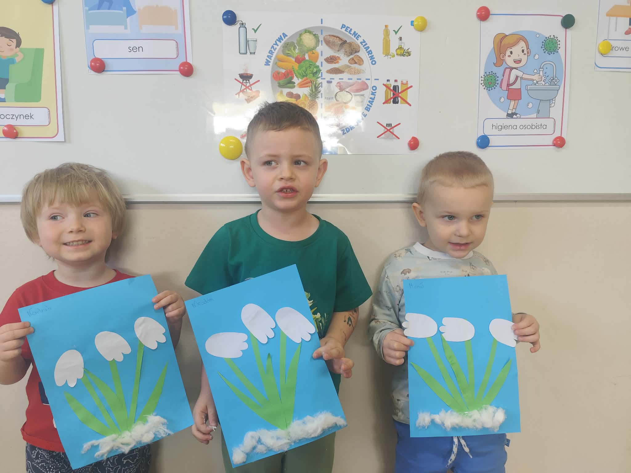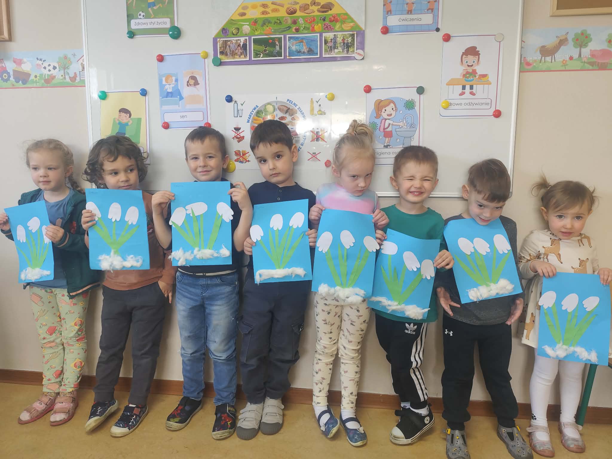 Przebiśniegi- praca plastyczna 3, 4-latków.