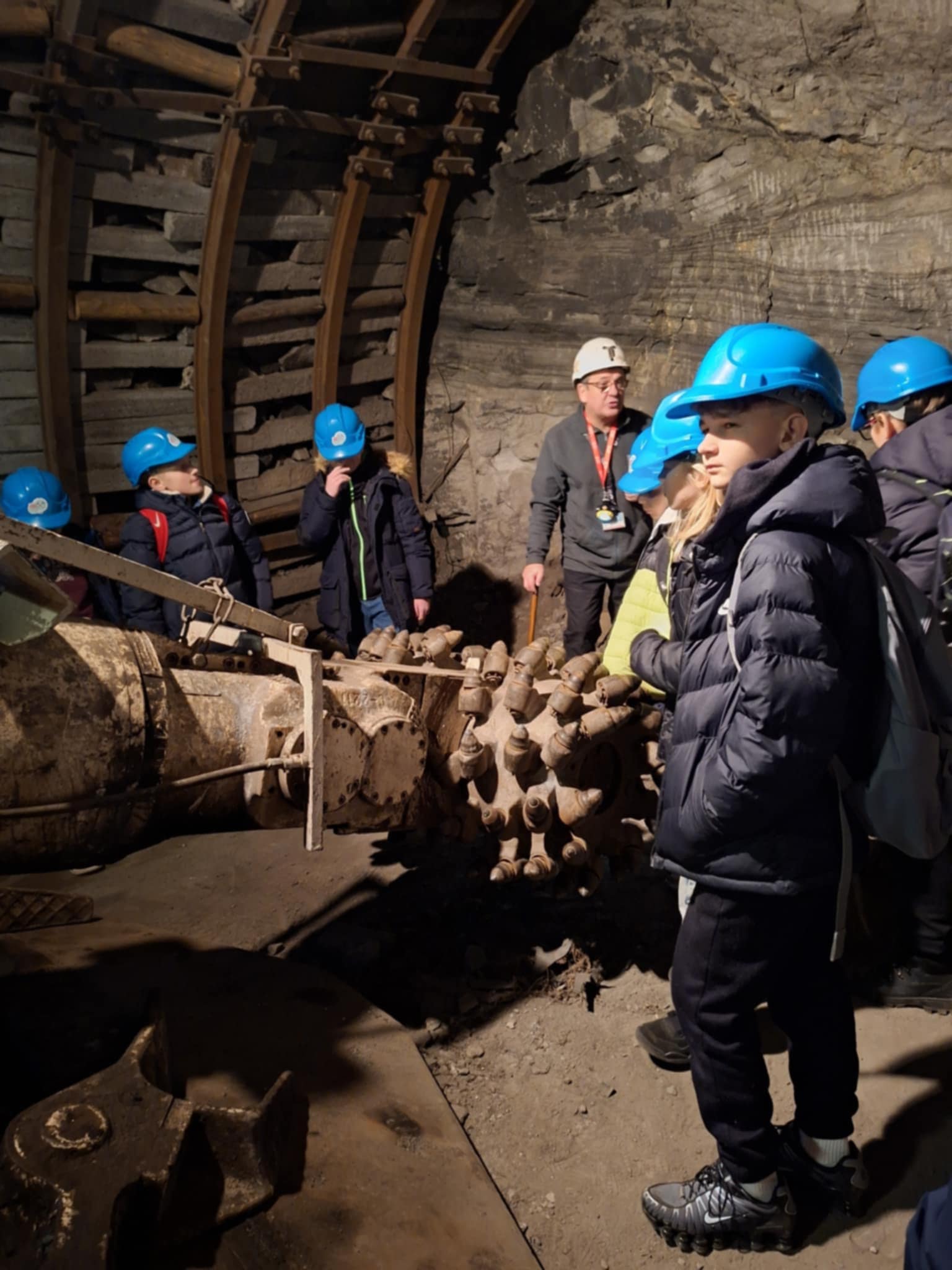 W dniu 26.11.2025 r. klasa „6” wzięła udział w wycieczce na Górny Śląsk w ramach projektu „Wyjście z klasą”. Uczniowie zwiedzili w Muzeum Górnictwa Węglowego w Zabrzu Kopalnię Guido. Była to dla nich edukacyjna przygoda, podczas której zjeżdżając do podziemi na głębokość 320 metrów, poznali historię górnictwa od XIX wieku do współczesności. Uczniowie przemierzając trasę historycznymi szybami, korzystali z elektrycznej kolejki podwieszanej (jedynej takiej na świecie), kaplicę św. Barbary oraz pracujące maszyny górnicze. Następnie przejeżdżając do Sląskiego Paru Nauki uczniowie wzięli udział w warsztatach meteorologicznych. Dowiedzieli się, jak analizować mapy pogody, prognozować, rozumieć zjawiska atmosferyczne (jak chmury, burze czy fronty) i bezpiecznie planować podróże. Później nadszedł czas na seans w Planetarium, który składał się z dwóch części: pierwsza to prowadzona na żywo przez lektora w języku polskim wędrówka po aktualnym niebie. Część druga to projekcja opowiadająca o człowieku, który od zarania dziejów z fascynacją spoglądał w niebo. Gwiazdy inspirowały badaczy i odkrywców takich jak Mikołaj Kopernik i Johannes Kepler. Prawa Keplera, całe stulecia po śmierci ich autora, pozwoliły na eksplorację kosmosu i lądowanie człowieka na Księżycu. Dzięki nim możliwe było zbudowanie stacji kosmicznych i wysłanie sond poza granice Układu Słonecznego.